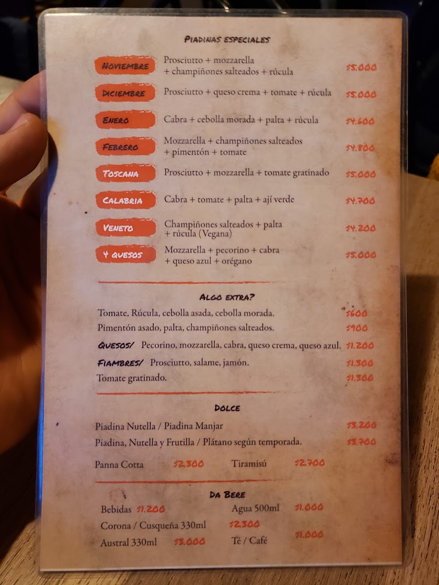 Piada Menu